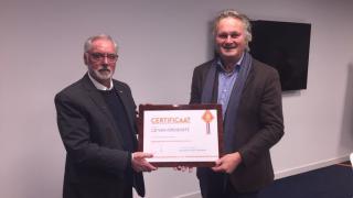 Wim Vermeule ontvangt het lidmaatschap van verdienste uit handen van Pier Eringa, voorzitter Raad van Toezicht AV - Foto: KNVB Media