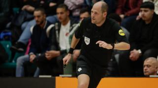 Jörn te Kloeze fluit in de preliminary round van de Champions League Futsal. - Foto: KNVB Media